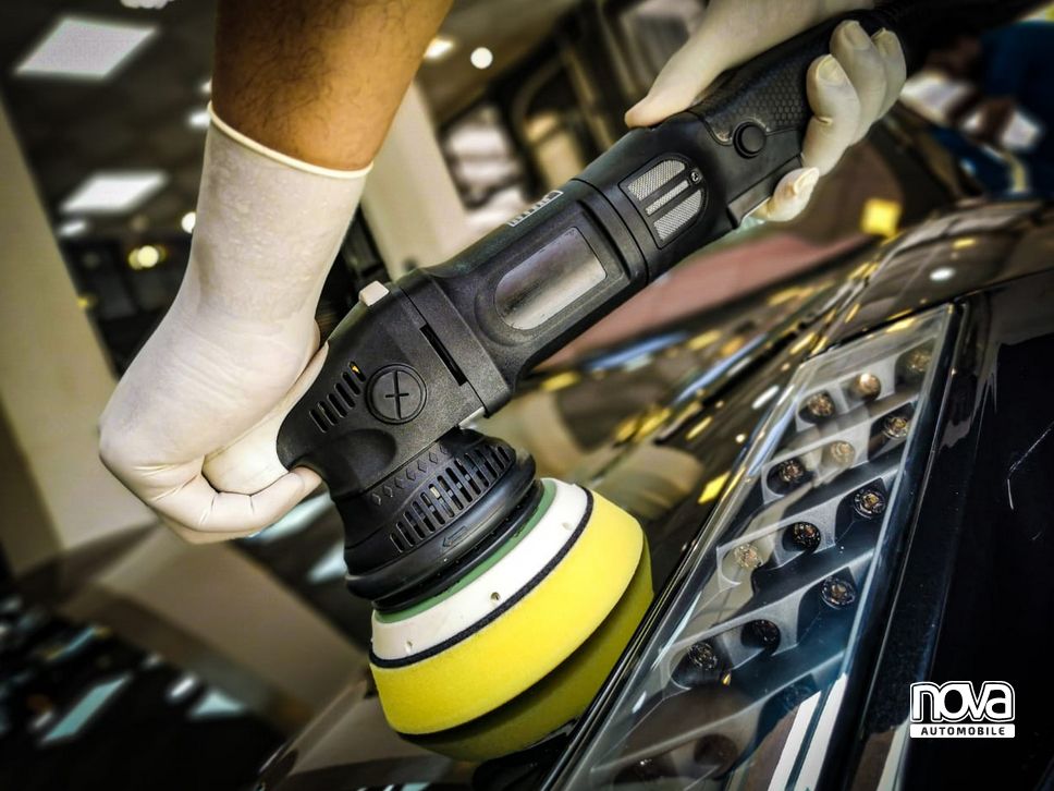 Les optiques de phares commenceront à jaunir avec le temps et deviendront ternes, ce qui peut grandement entraver votre capacité à voir la nuit. Vos phares peuvent être restaurés dans leur état d'origine avec un ponçage et un polissage ainsi vous aurez une bien meilleure expérience de conduite de nuit. Si un optique a été remplacé et qu'il y a une différence de couleur, il peut être possible de rénover un seul optique, le polissage des phares fonctionnera comme une solution rapide et efficace. La rénovation des phares consiste à effectuer un ponçage avec un disque abrasif puis à polir successivement l’optique avec des disques à grains de plus en plus fin. L’optique est ensuite lustré.